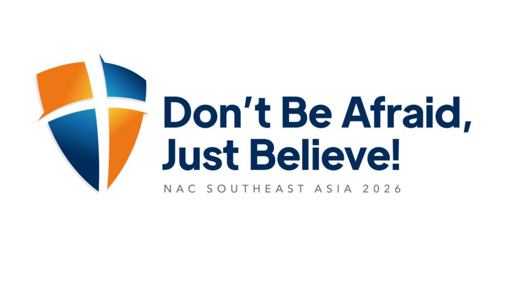 A blue-orange protective shield forming the shape of a cross is the pictorial element in the concept from South-East Asia. The shield is a reference to the shield of faith mentioned in Ephesians 6: 16. The colour blue represents calmness and trust, while orange signifies courage and hope.