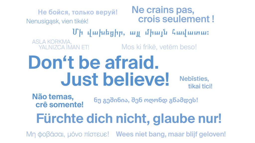 “Don’t be afraid. Just believe!” in numerous languages. The European District Apostle Areas have once again visualised the motto as a word cloud.