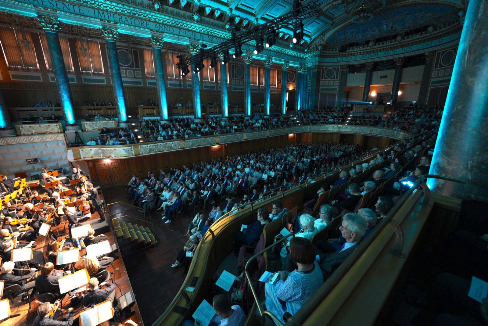Cependant, la soirée ne se termine pas dans une acoustique pompeuse ou un spectacle de lumières, mais par un choral plutôt sobre – l’Abendlied (littér. : Chant du soir, NdT), de Josef Gabriel Rheinberger : « Demeure parmi nous, car le soir approche et le jour décline. » – Une soirée qui incite à la réflexion.