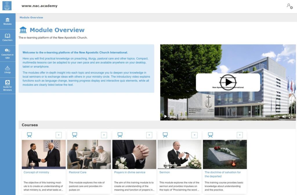La formation initiale et continue des ministres n’est pas une nouveauté au sein de l’Église néo-apostolique. Mais les possibilités de le faire sont très différentes à l’échelle mondiale. C’est ce qu’explique le chef de projet dans la vidéo de bienvenue sur nac.academy.