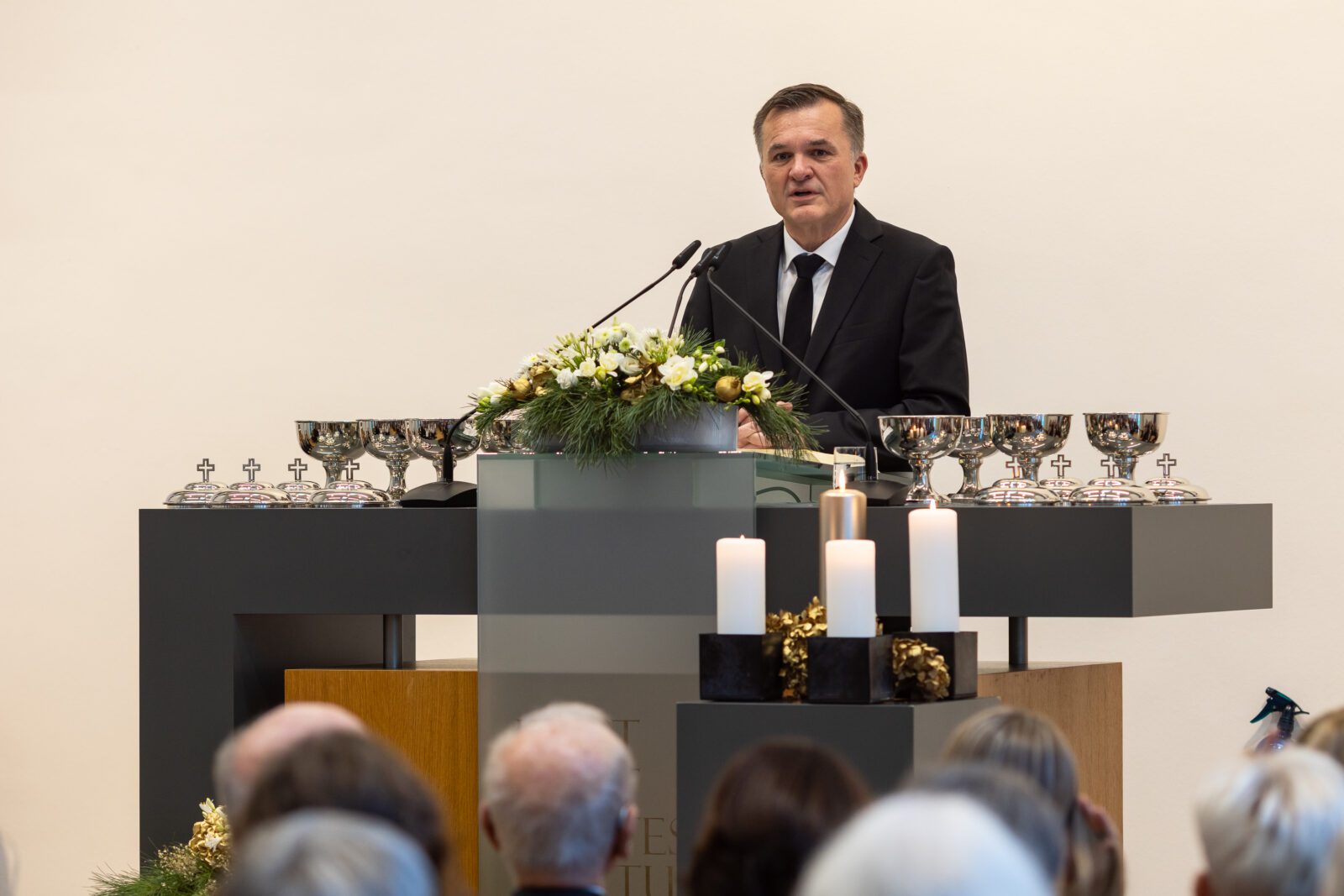 Um die Ankündigung des Messias ging es im Gottesdienst am Sonntag, 21. Dezember 2025 in Bensheim (Deutschland). Stammapostel Jean-Luc Schneider stützte sich dabei auf die Prophezeiung in Jeremia 23,5.6: „Siehe, es kommt die Zeit, spricht der Herr, dass ich dem David einen gerechten Spross erwecken will, der soll ein König sein, der wohl regieren und Recht und Gerechtigkeit im Lande üben wird. Zu seiner Zeit soll Juda geholfen werden und Israel sicher wohnen. Und dies wird sein Name sein, mit dem man ihn nennen wird: Der Herr ist unsere Gerechtigkeit.“