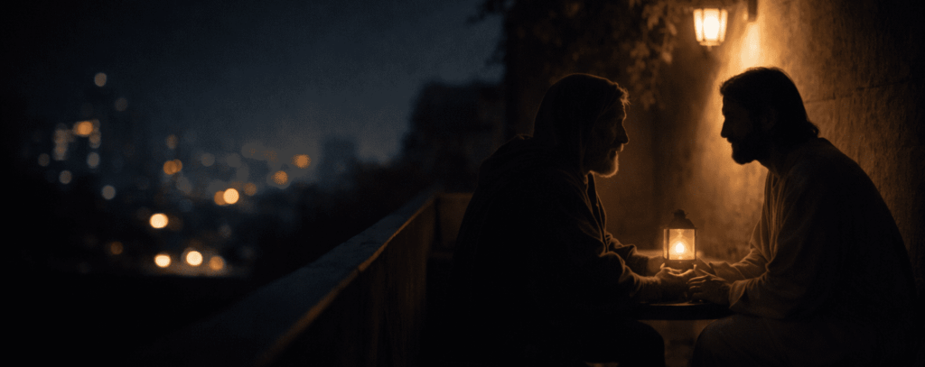 Jesus reagiert nicht mit Distanz, obwohl der Zeitpunkt des Besuchs durchaus Zurückhaltung nahelegen könnte. Er stellt Nikodemus nicht bloß. Er nutzt den Moment nicht, um einen Gelehrten zu widerlegen. Er nimmt ihn ernst.