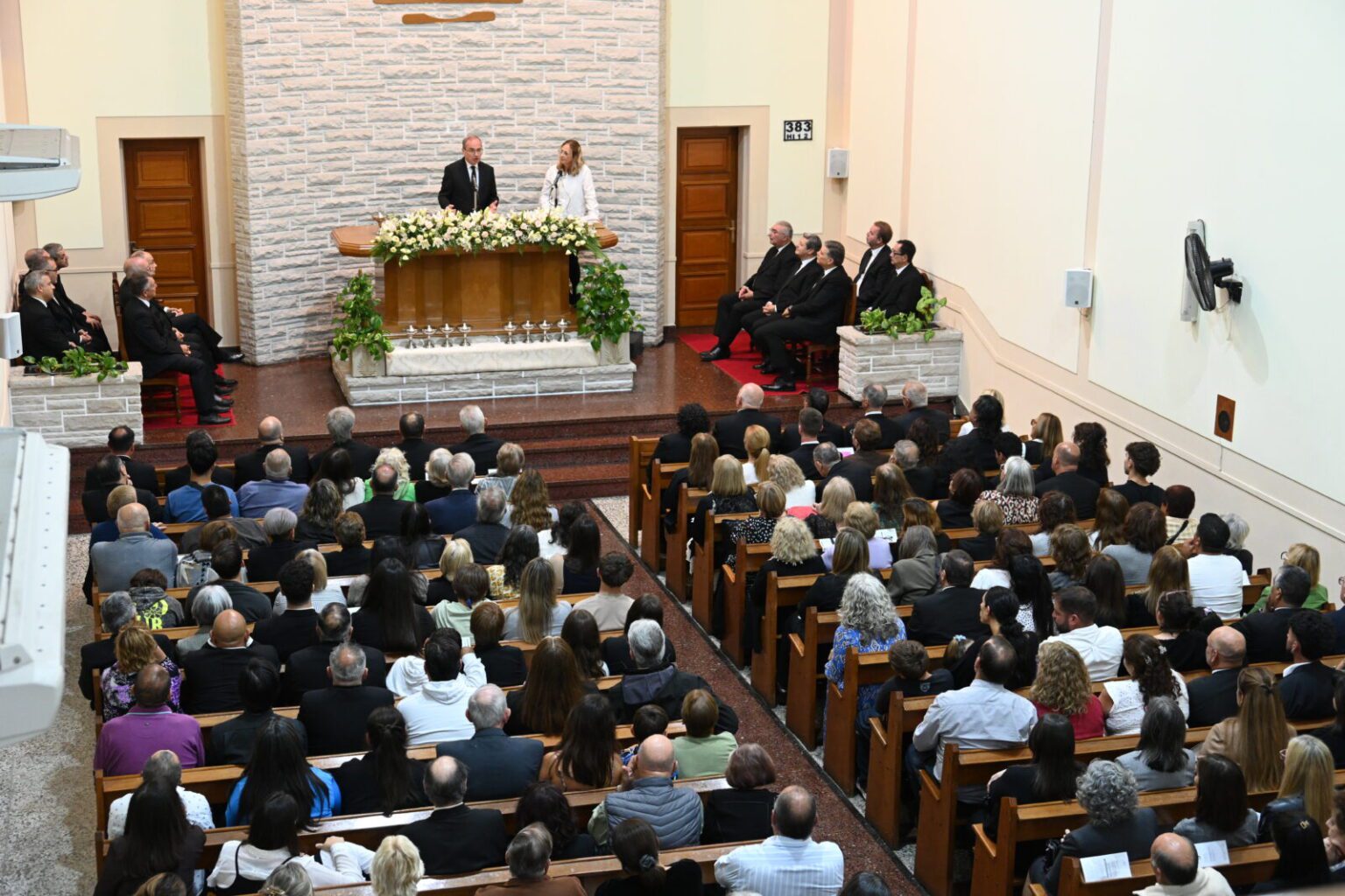 Dem Gottesdienst am Mittwoch, 25. März 2026 in Mar del Plata (Argentinien) legte Stammapostel Jean-Luc Schneider das Bibelwort aus Römer 16,20 zugrunde: „Der Gott des Friedens aber wird den Satan unter eure Füße treten in Kürze. Die Gnade unseres Herrn Jesus sei mit euch!“